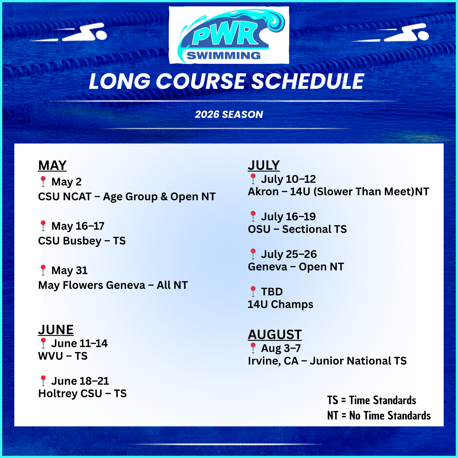 Explore PWR Swimming’s 2026 long course season meet schedule